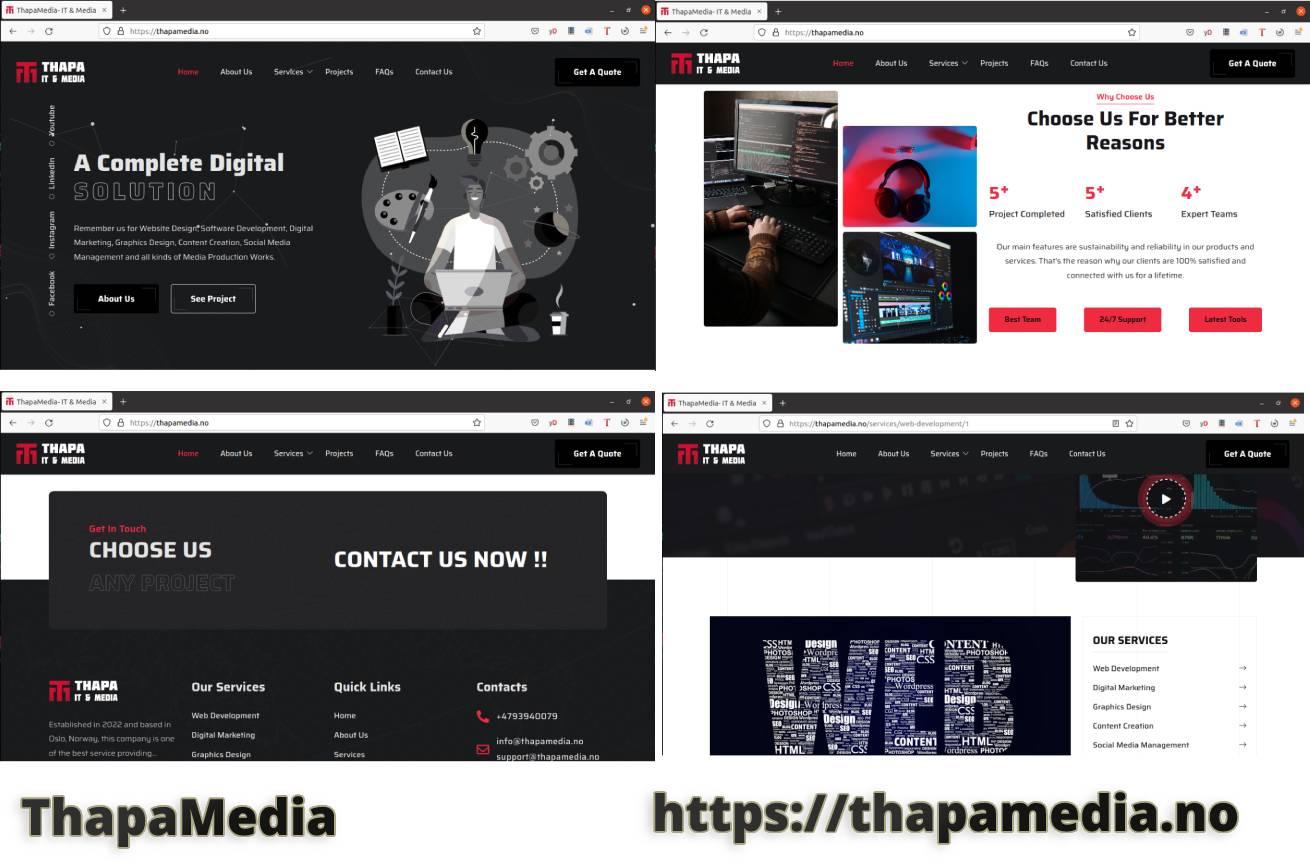 व्यक्तिगत तथा कर्पोरेट वेबसाइटदेखि ई–कमर्स र जटिल वेब एप्लिकेशनसम्म, नवीनतम प्रविधि र उत्कृष्ट अभ्यासहरू अनुसरण गर्दै डिजाइन र विकास गरिन्छ।